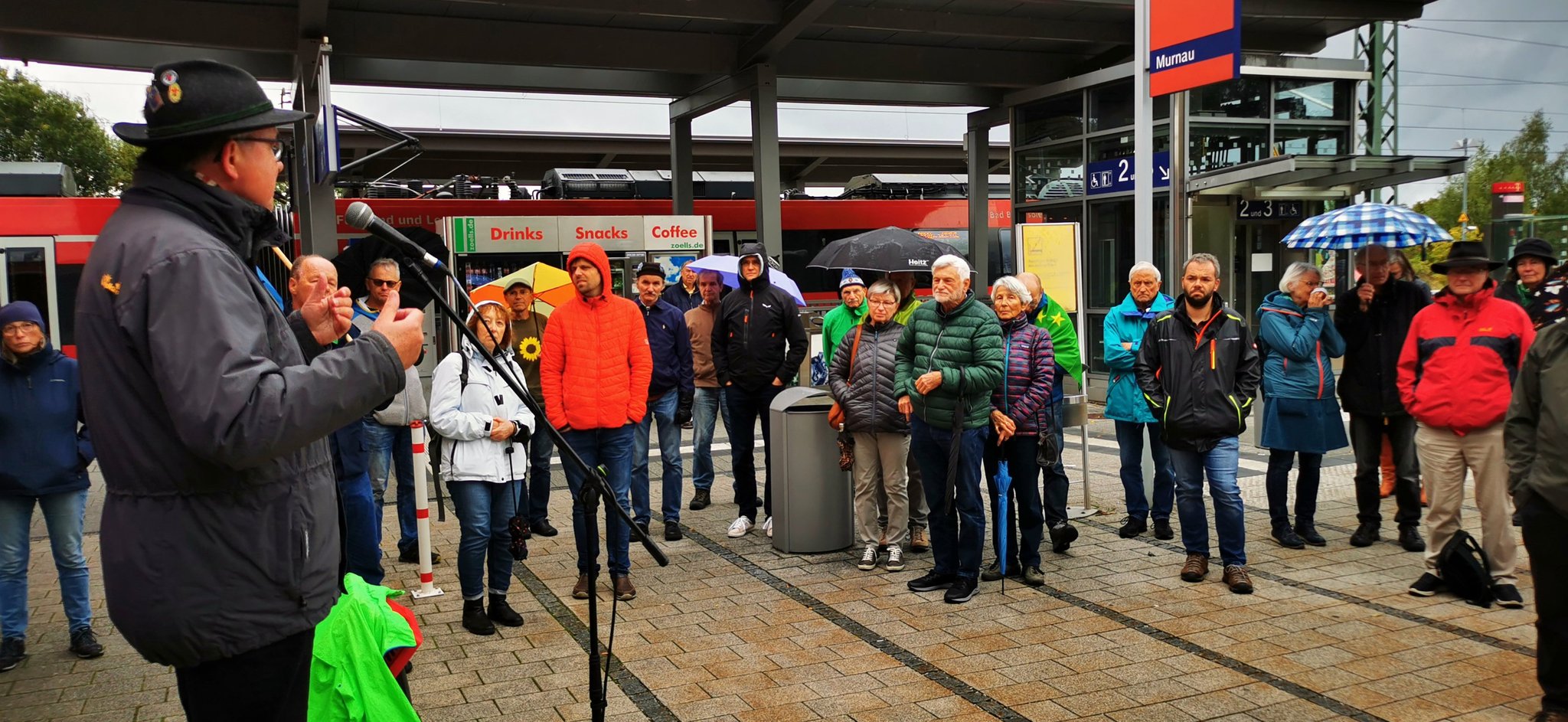 Am Murnauer Bahnhof durfte ich bei einer Kundgebung von Pro Bahn zum Thema Werdenfelsbahn und die derzeitige Situation der Bahn sprechen. 17.09.2022, Foto: Norbert Moy