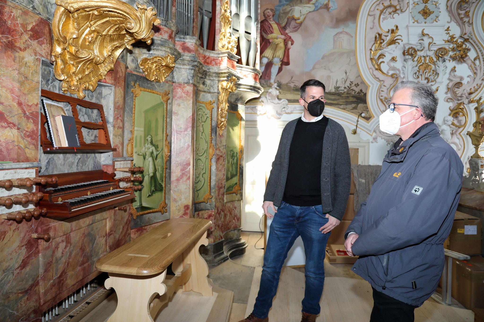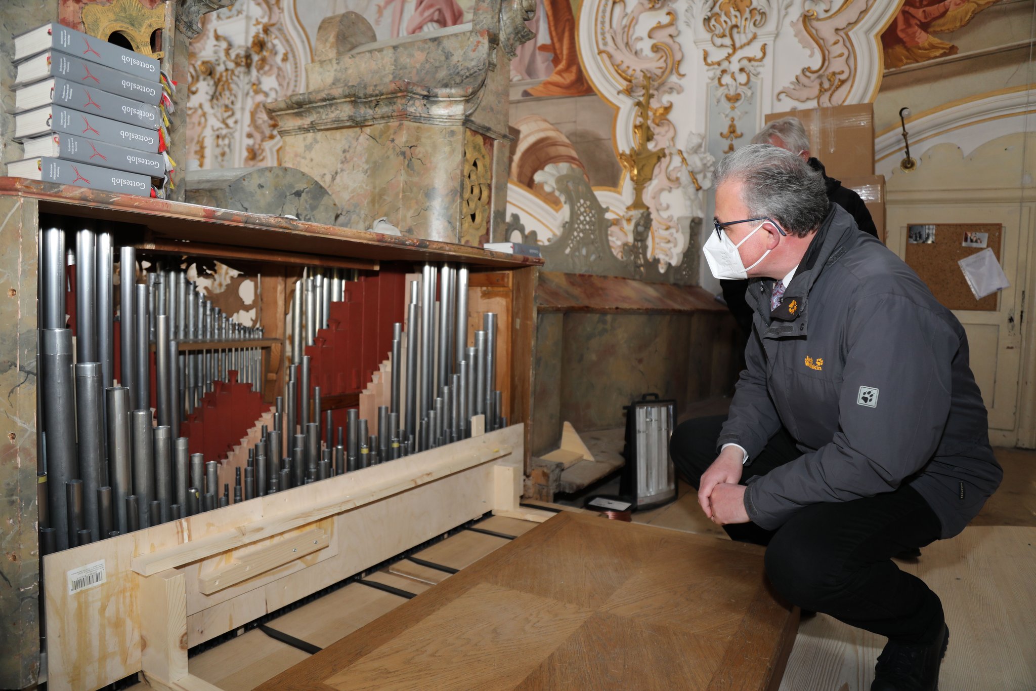Der Fraktionsvorsitzende der Freien Wähler im Bayerischen Landtag Florian Streibl besuchte am Donnerstag den 03. März 2022 die Pfarrkirche Mariä Geburt Rottenbuch und machte sich vor Ort ein Bild von den Restaurierungsarbeiten an der Freywis-Orgel. Vorausgegangen war ein Beschluss der Regierungsfraktionen des Bayerischen Landtags, Freie Wähler und CSU, das bedeutende Orgelprojekt mit 100.000€ großzügig zu unterstützen. Herr Landtagsabgeordneter Streibl kommentierte die Spende wie folgt: