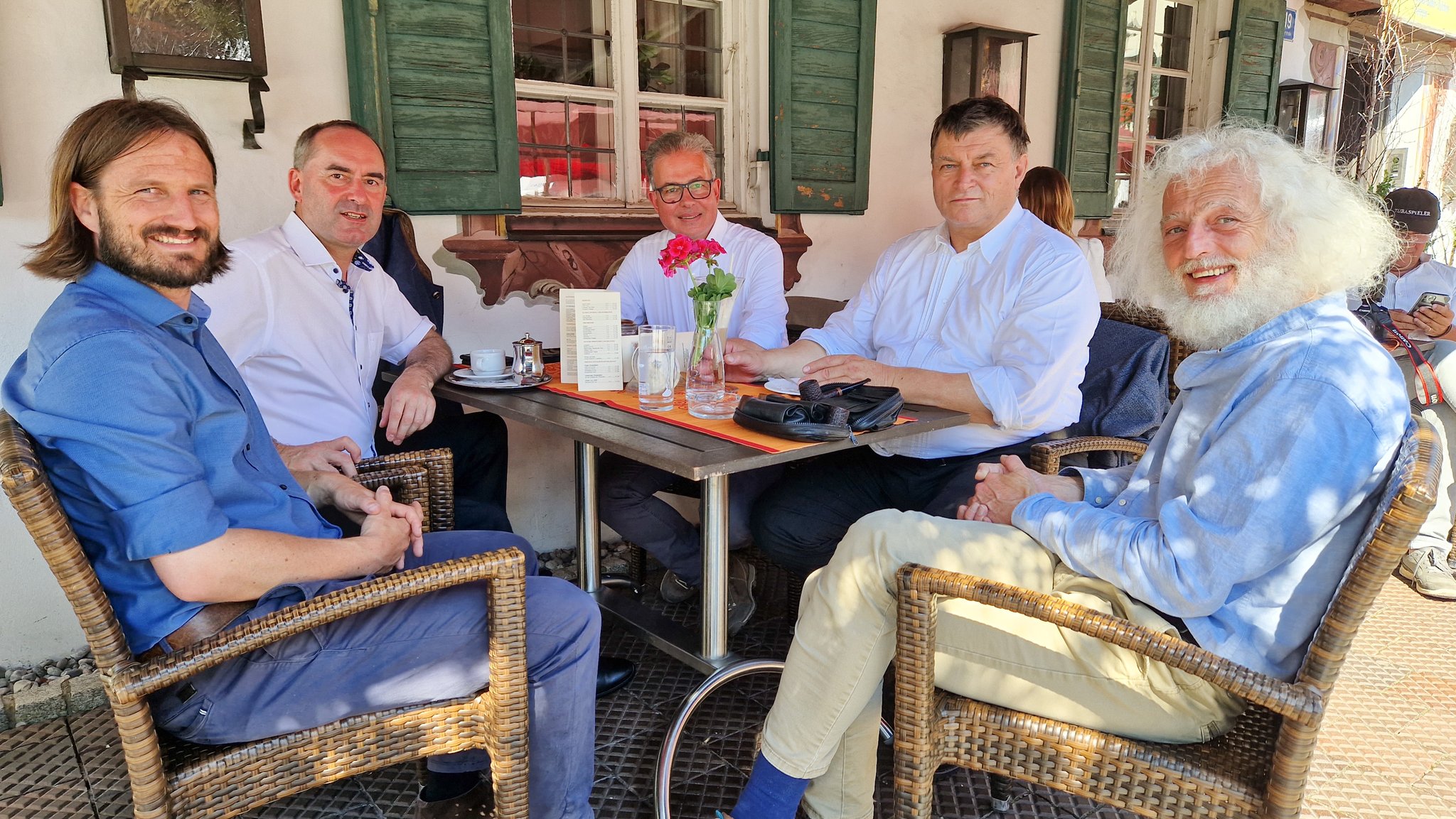 Dorfplatz, um auf der Terrasse vom Hotel Post die Gespräche fortzuführen. 09.08.2022. Fotos: Büro MdL Streibl