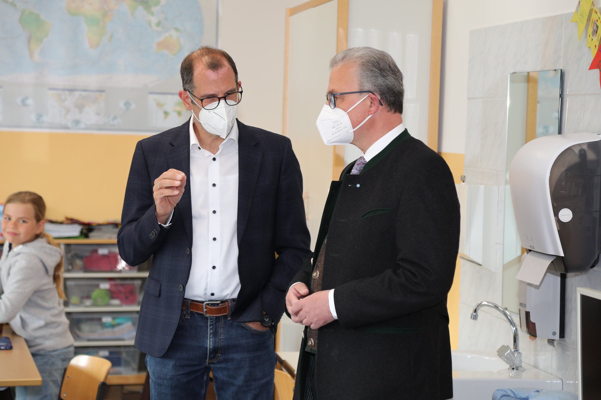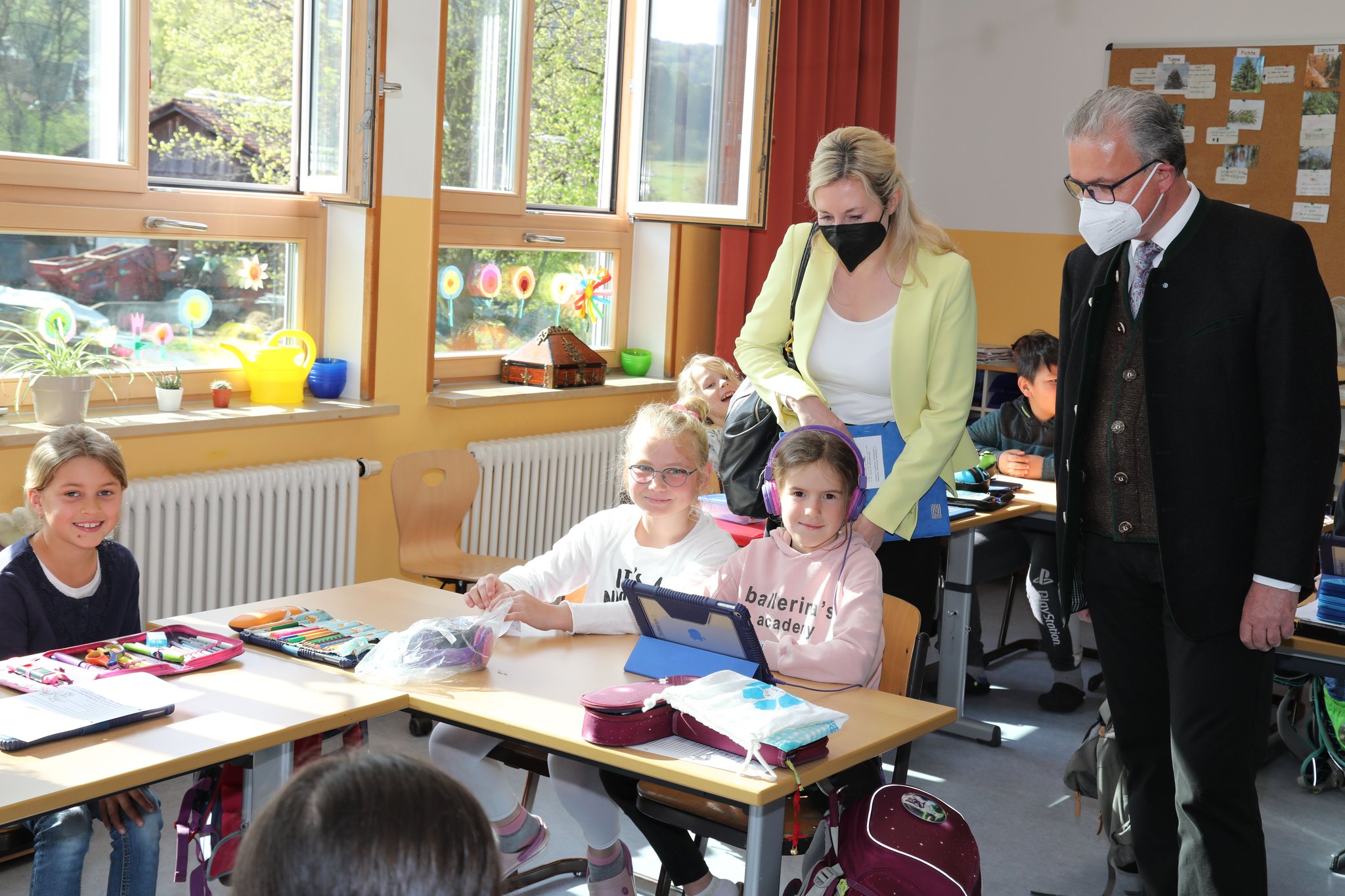 Auf meine Einladung hin besuchte die Staatssekretärin Anna Stolz mit mir heute die Grundschule in Ohlstadt. Rektorin Gabi Wallner gab uns und dem 1. Bürgermeister Christian Scheuerer einen Einblick in den Schulablauf. 05.05.2022, Fotos: Büro MdL Streibl