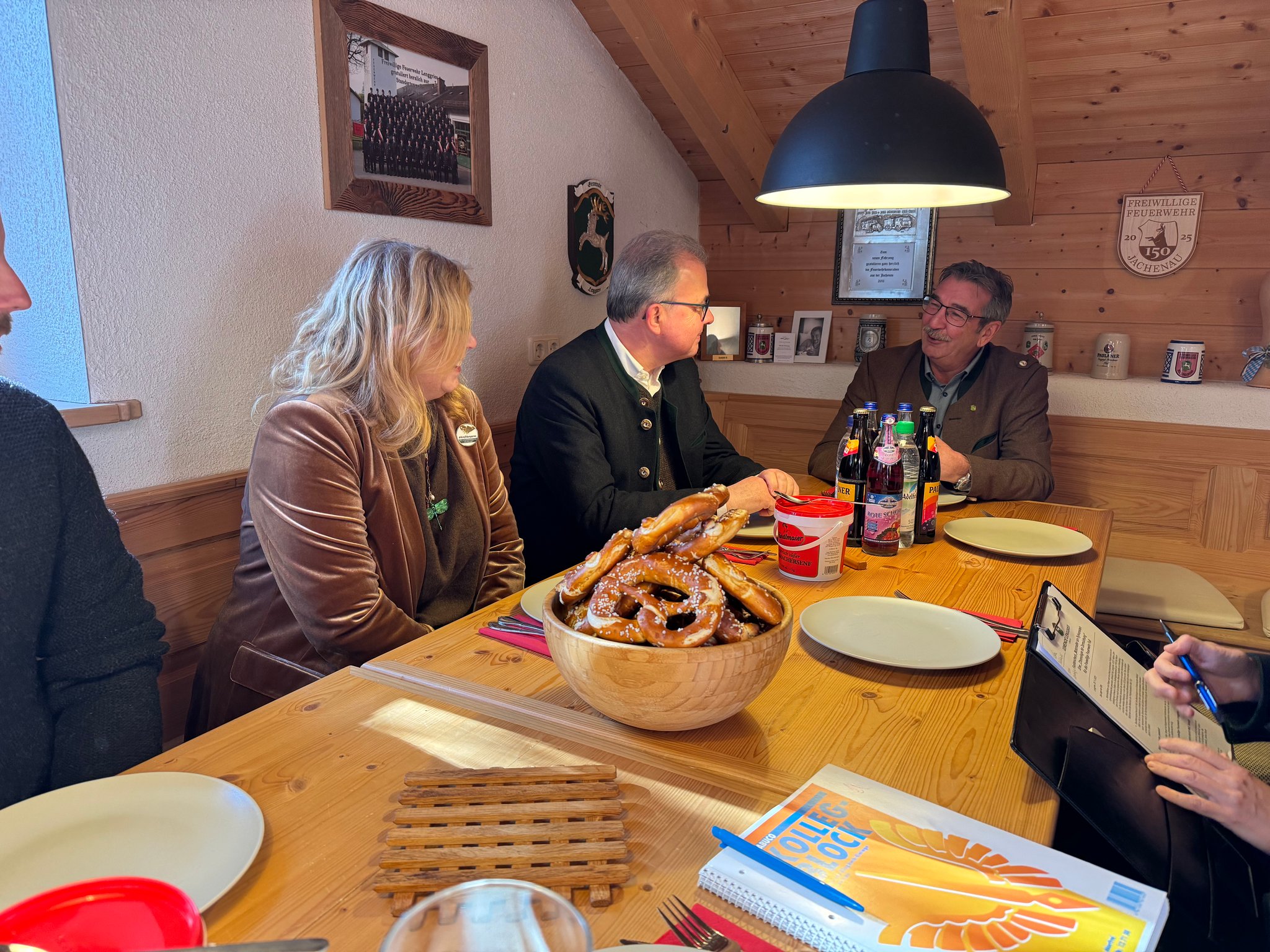 Austausch mit der Freiwilligen Feuerwehr Fall und dem Lenggrieser Bürgermeister Stefan Klaffenbacher über die sich häufenden Motorradunfälle am Sylvensteinsee, bei denen zuletzt zahlreiche Motorradfahrer ums Leben gekommen sind.